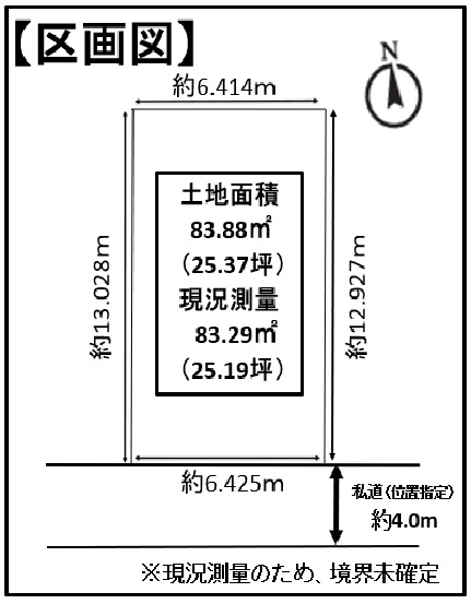 | 土地面積 | 83.88㎡(25.37坪)登記簿、私道面積:83.79㎡、共有:12分の2 |
